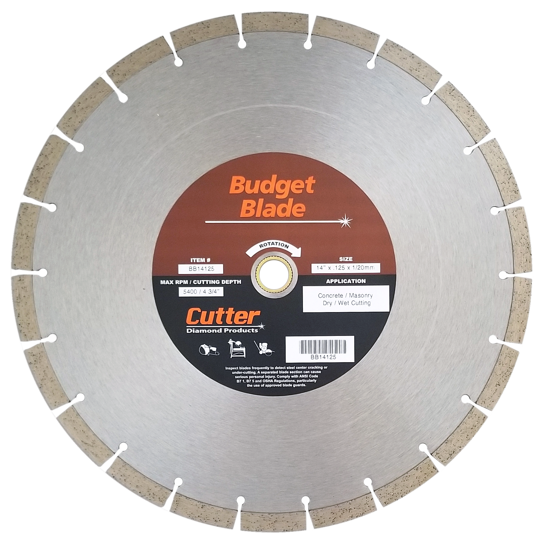Budget Diamond Blade Size - 14″ x .125 x 1/20mm